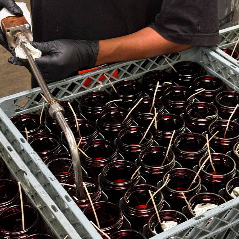 These candles are simple - they're all made with 100% domestically grown soy wax, fine fragrance oils, and cotton-core wicks. The fragrances used are paraben-free, phthalate-free, and never (ever) tested on animals.