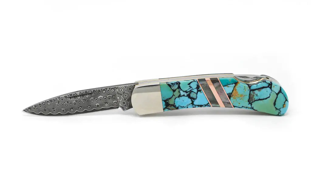 Gemstone Exotics Damascus Titanium 3" lockback Double: Kingmen Turquoise Blue/Green w/ black matrix