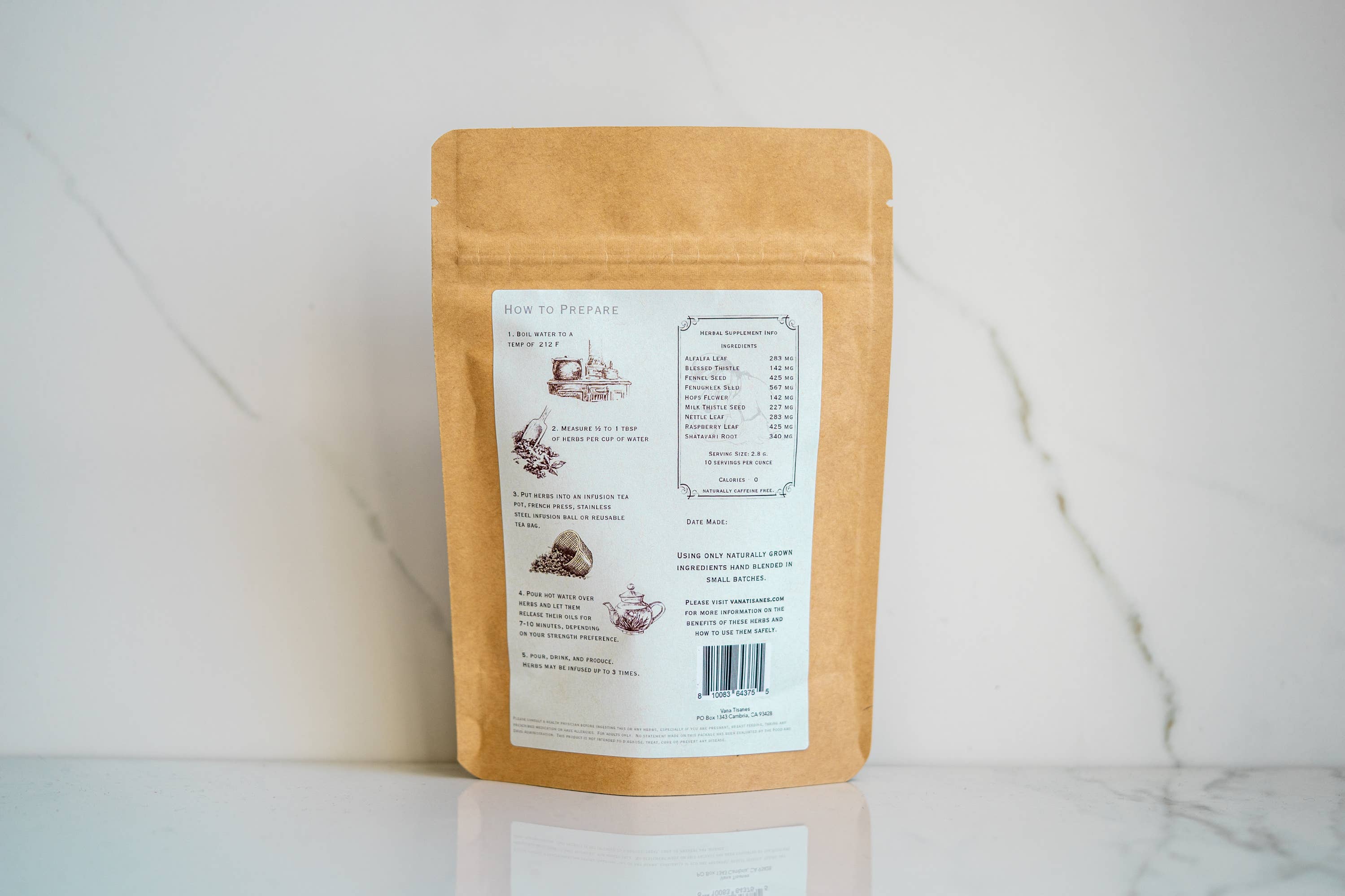 Flavor Profile Earthy, Grassy, Light, Simple Ingredients Alfalfa Leaf, Blessed Thistle, Fennel Seed, Fenugreek Seed, Hop Flower, Milk Thistle Seed, Nettle Leaf, Raspberry Leaf, Shatavari Root