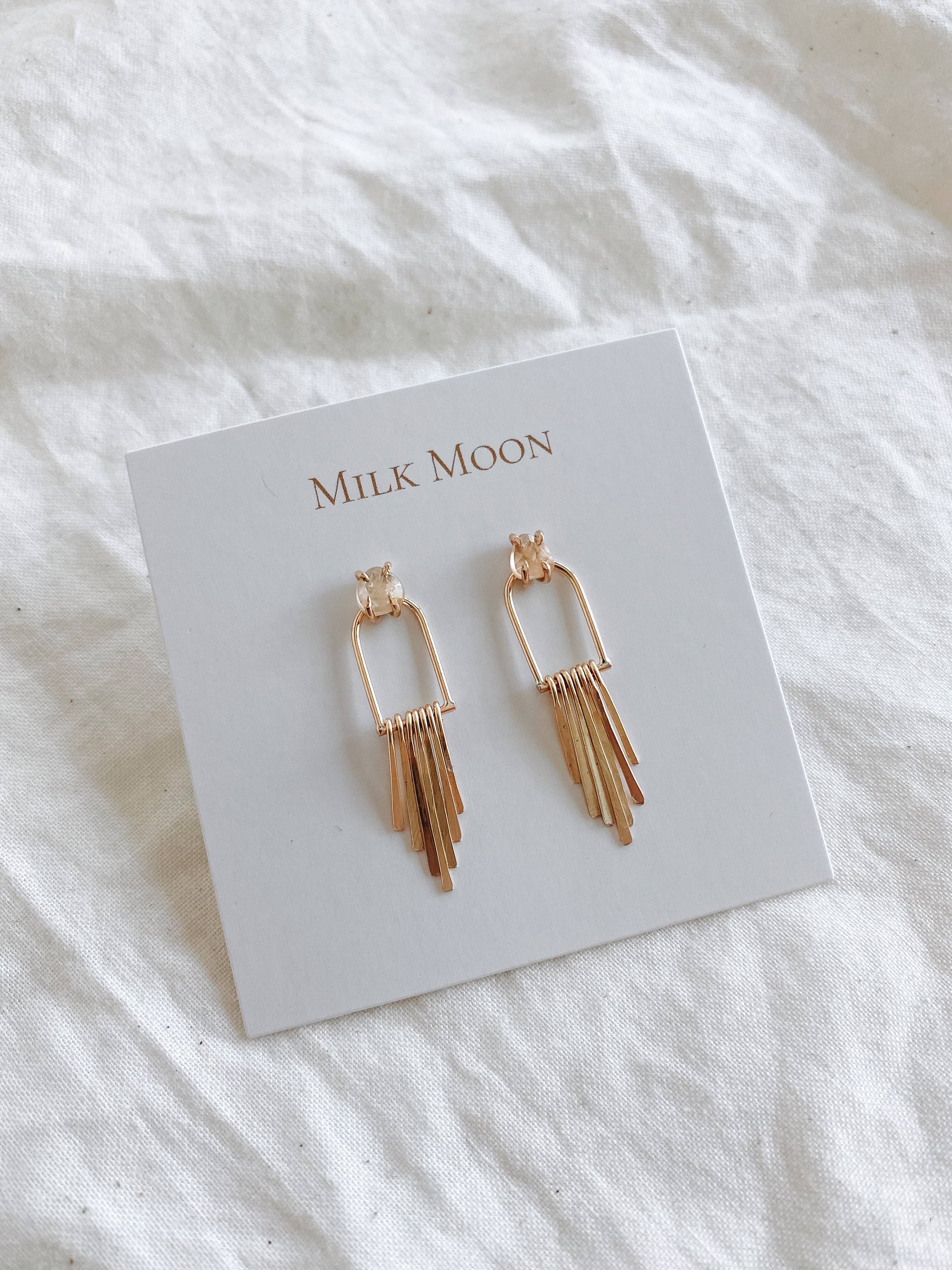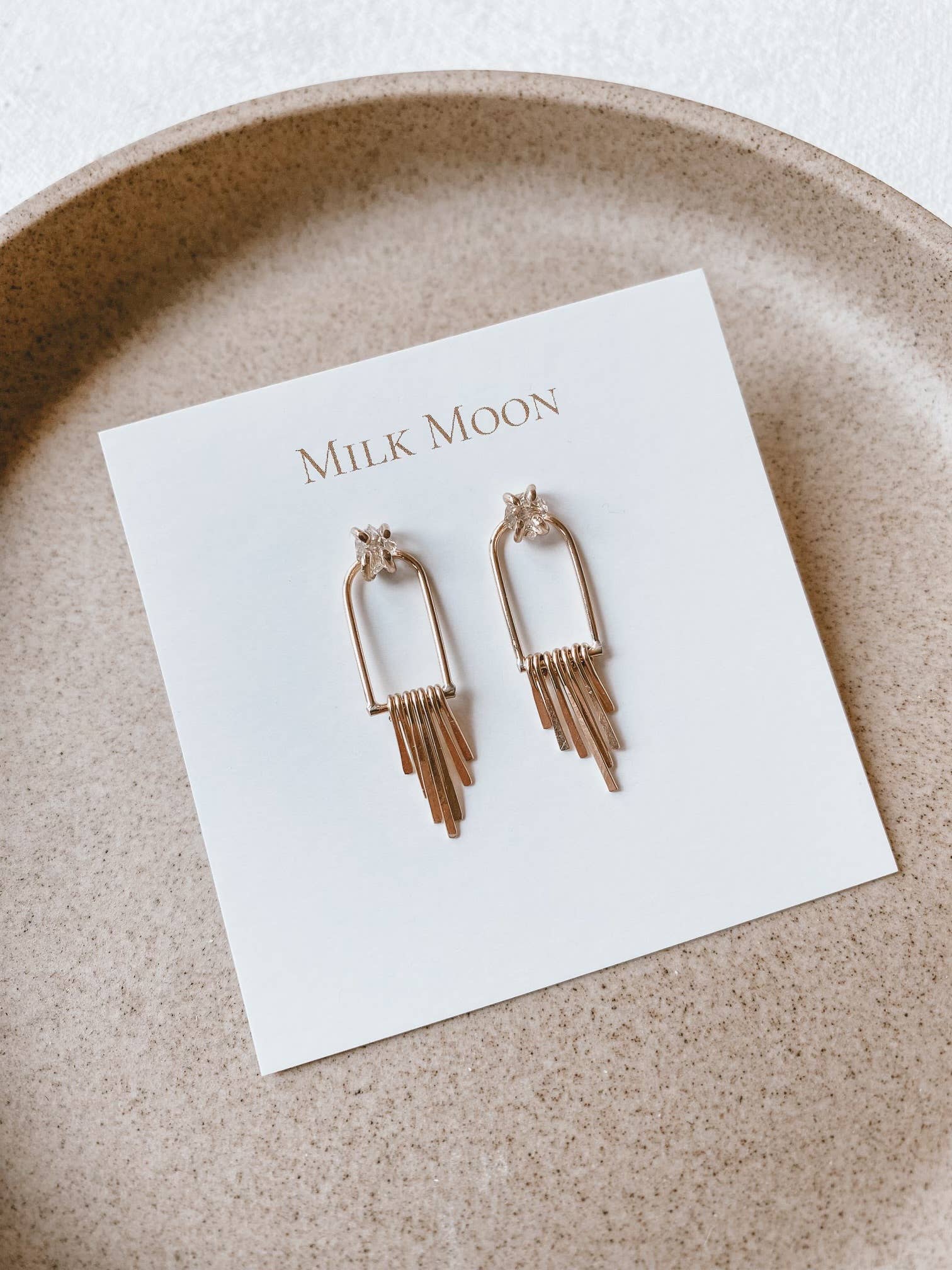 14kt Gold-Fill Arch setting with fringe, Sterling Silver posts, Herkimer Quartz.