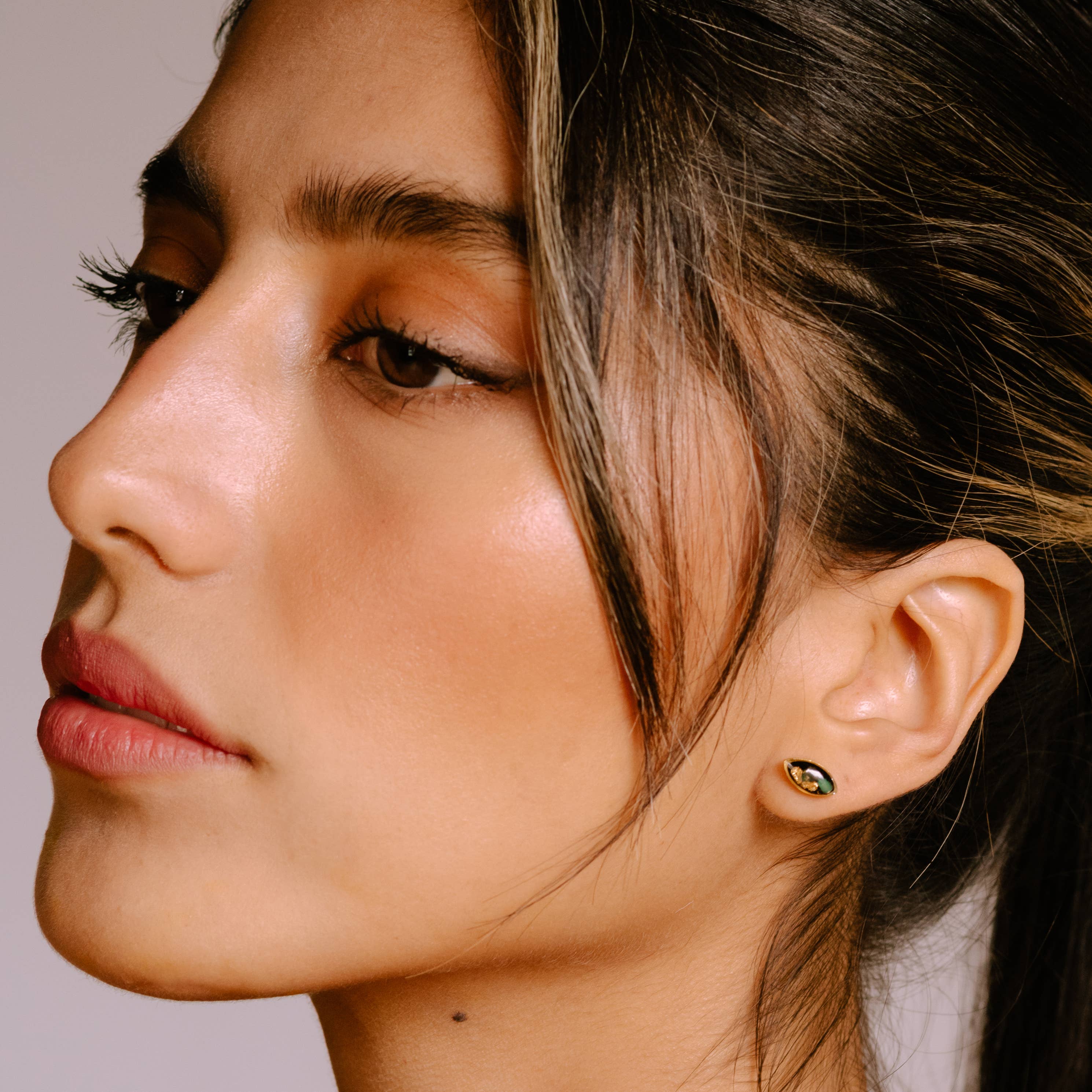 Earrings measure 10mm x 5mm and have steel posts with clutch backings.