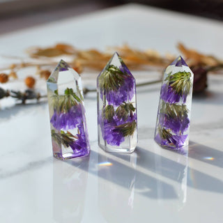 Mini Floral Crystal Tower Obelisk - Purple Statice