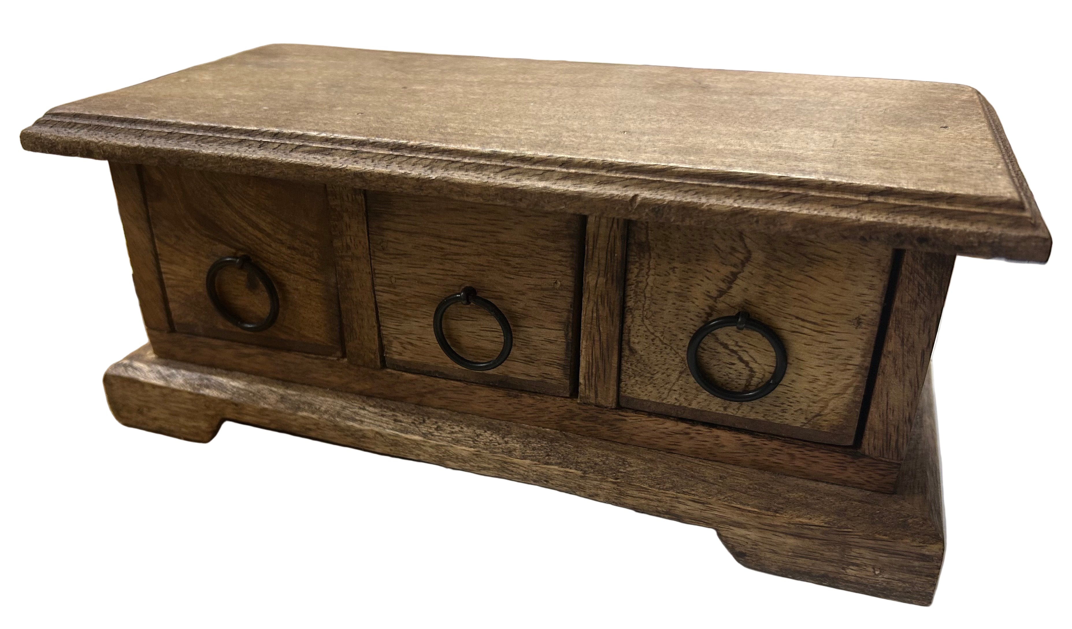 Three Drawers Wooden Herb Chest - Light grain wood.