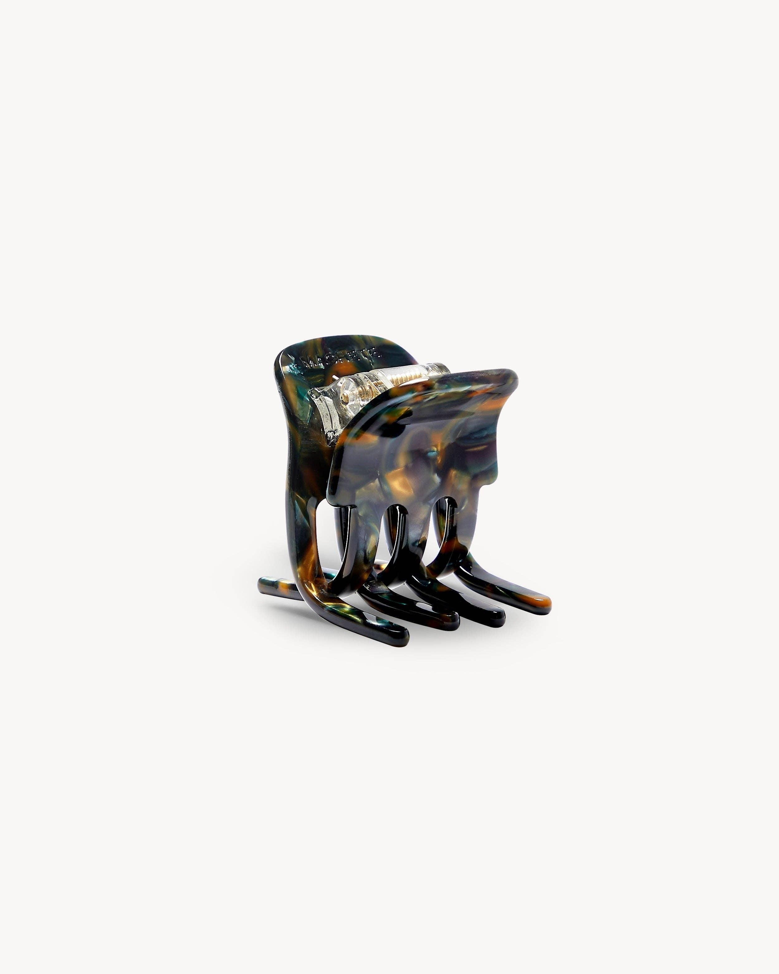A handcrafted mini claw clip designed to securely and gently hold hair.