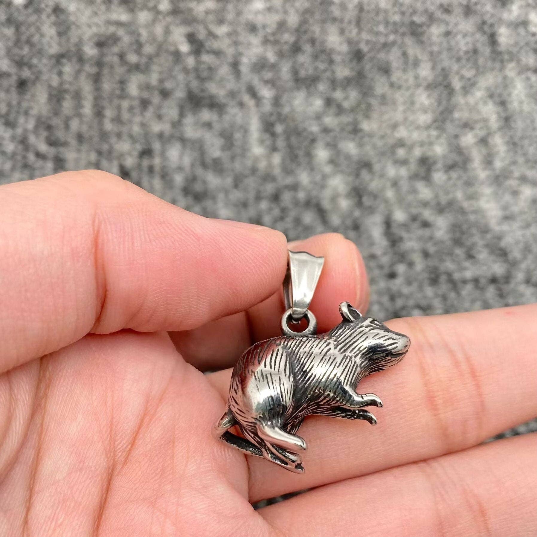 Stainless steel rat pendant for rodent lovers and those who appreciate a clever and adaptable animal. Traditionally rats symbolize resourcefulness, survival instincts, and the ability to overcome obstacles.